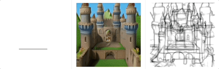 训练好的模型将文字说明和部分草图作为输入,并输出与可能完成的草图相对应的生成图像。