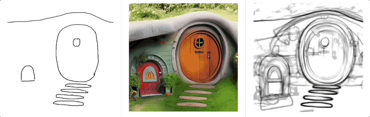 需要注意的是,通过对许多不同完整程度的随机部分草图进行训练,模型学会了将任何完整程度的草图转换成最终图像。