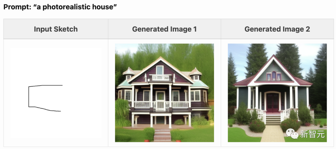 例如,给定房子的前几条线,ControlNet无法在绘制线的区域之外生成重要的细节: