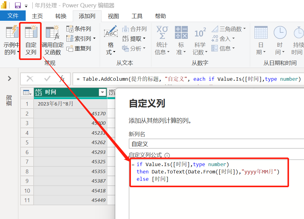 小勤:懂了,通过Value.Is函数判断是否为数字类型,如果是的话,说明原来是日期,然后转为日期(Date.From)并且转换为年月文本格式(Date.ToText)……