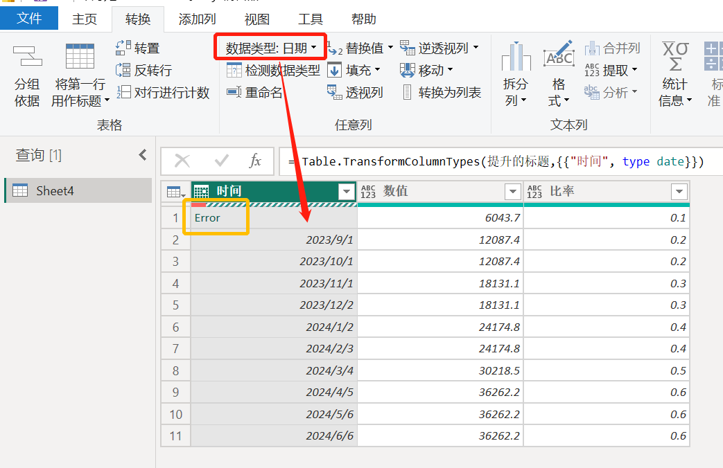 小勤:啊,原来是这样,又get到个原理!但是……我更改数据类型的确是把日期识别出来了,但前面那个“6-8月”的出错了!怎么办?
