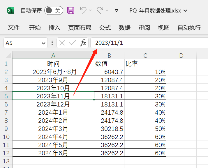 大海:很多这种年月的录入都只是显示为“年月”的样子,实际是日期,所以导入Power BI的时候,就会识别为日期。