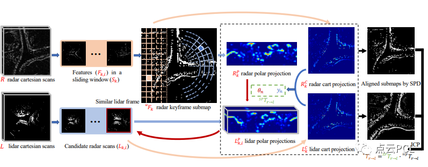 系统的RoLM总体框架如图2所示,与现有的异构传感器信息匹配方法不同,我们使用扫描投影描述子(SPD)来描述它们的相似性,而不使用GPU进行加速。