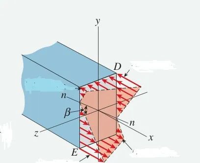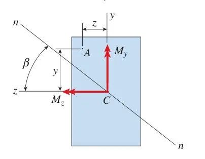 ▲图2 组合荷载下的正应力分布,N-N为中性轴