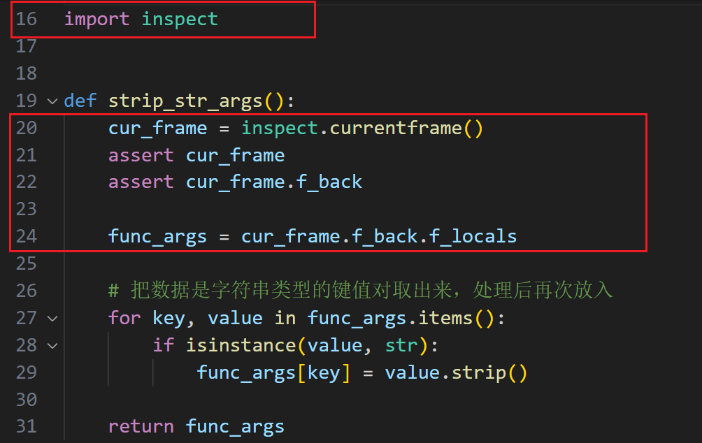 cur_frame.f_back 获取上一层帧栈,就是调用这个函数的人的环境信息。 f_locals 相当于获得了外部传进来的 locals 字典现在调用则很简单了: