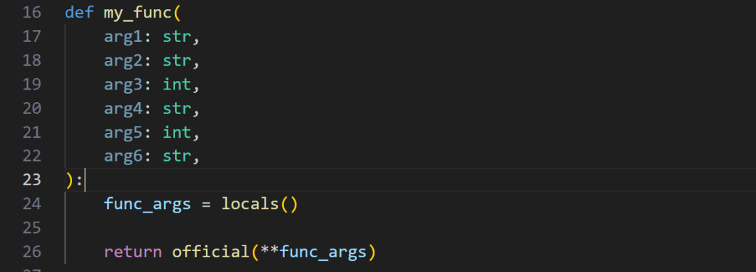 既然函数的参数是普通的变量,那么很自然我们可以想到使用内置函数 locals 获取本地变量字典