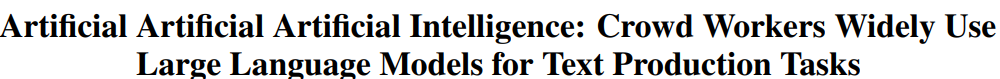 今天分享的这篇文章对此问题展开了研究:作者提出采用按键检测和合成文本分类的方法来识别众包工人是否使用LLMs,实验结果显示众包工人在文本摘要任务中普遍使用LLM,使用率大概为33%到46%。最后作者呼吁各大众包平台需要采取一定的方法来确保众包数据的人性化。