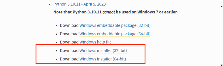 前往Python官网,直接下载安装程序 https://www.python.org/downloads/windows/