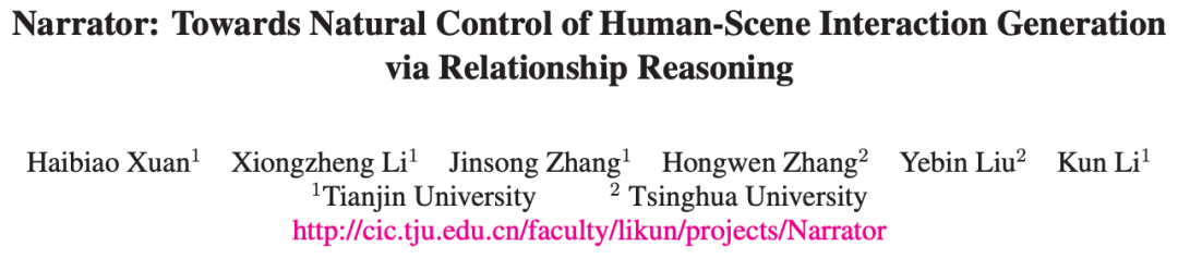 针对这一问题,天津大学团队联合清华大学在ICCV 2023的工作中提出Narrator,将重点放在一项具有挑战性的任务上,即从文本描述中自然可控地生成逼真且多样的人与场景交互。