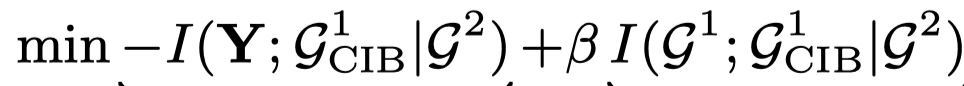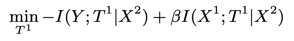 条件图信息瓶颈(Conditional Information Bottleneck): 给定随机变量X1、X2和Y,条件信息瓶颈原则旨在将X1压缩为瓶颈随机变量T1,同时保留用于基于随机变量X2预测Y的相关信息,其中β是一个拉格朗日乘数,用于平衡两个条件互信息项。