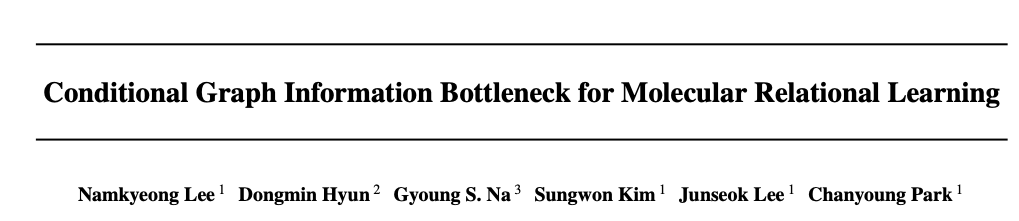 Lee, N., Hyun, D., Na, G. S., Kim, S., Lee, J., & Park, C. (2023). Conditional Graph Information Bottleneck for Molecular Relational Learning. arXiv preprint arXiv:2305.01520.