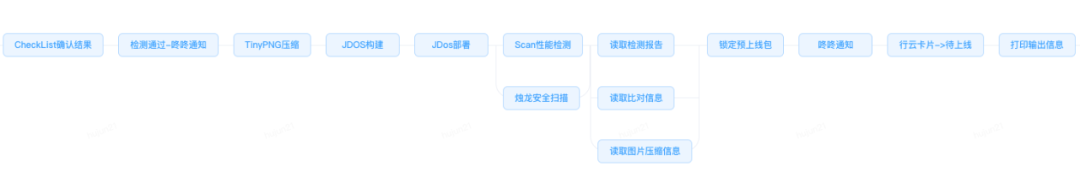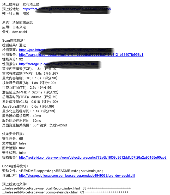 预上线部署流水线已经打通了JDOS的构建部署功能,并加入了Scan性能检测和烛龙安全扫描,为预上线的页面进行全方位的质量风险把控。
