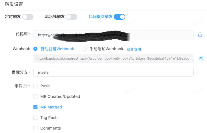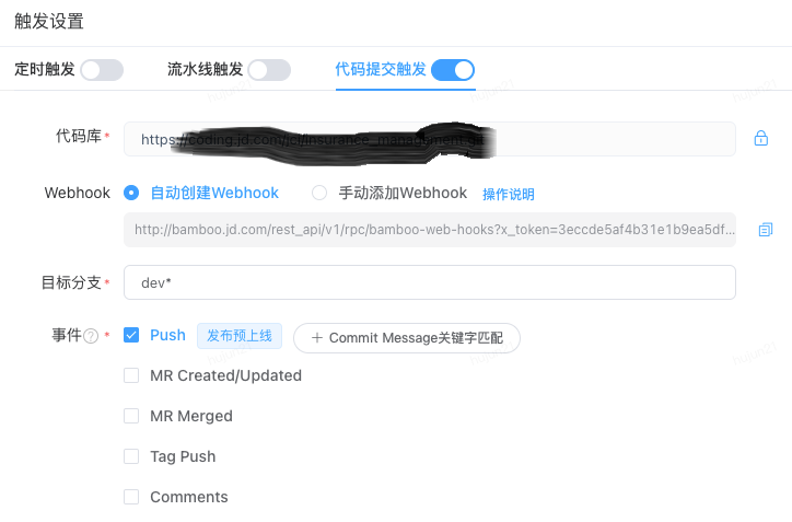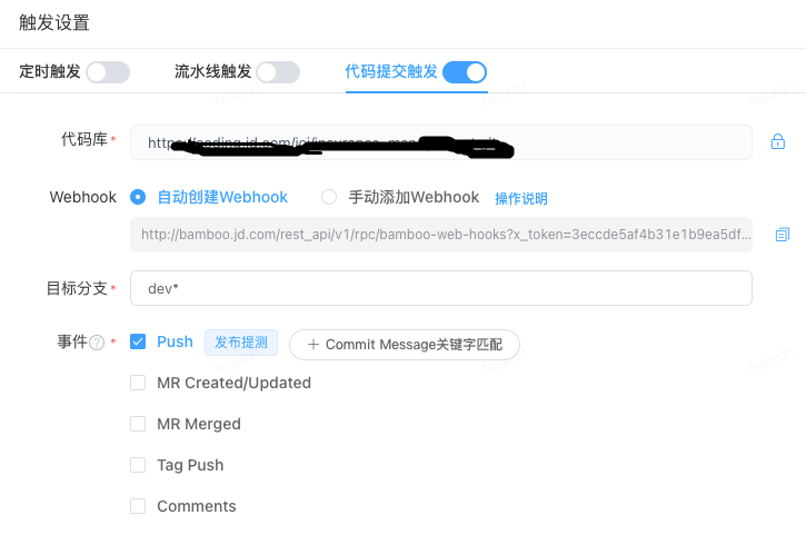 图15 流水线代码提交触发设置图