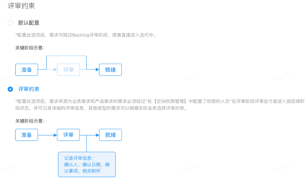 为了防止员工私自承接确认需求,规范了评审流程,设置了评审约束。需求来源为业务和产品的需求必须经过项目管理者,在需求评审阶段评审通过后才能进入到后续的开发阶段,并可记录详细的评审信息。