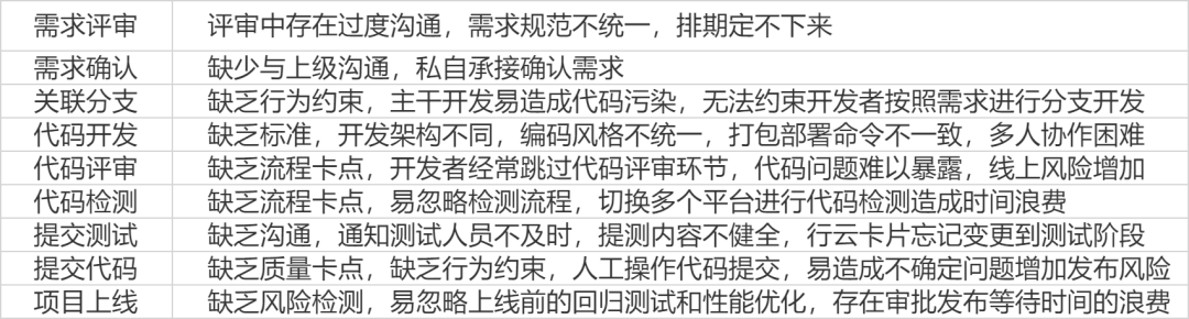 通过对这些问题和各个团队的反馈深入分析,发现其中最大的瓶颈在于研发协作之间的沟通壁垒、流程环节的疏漏和质量把控的不到位,而这些又是解决大多数问题的前提。