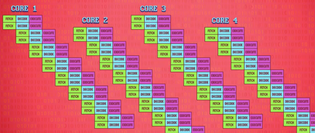 之前的文章所说的都是如何优化一条指令执行的速度(比如并发,乱序,分支预测,加相同电路让某个频繁操作可以同时进行处理),另外一种提升性能的方式就是 同时运行多个指令流,使用多核处理器: