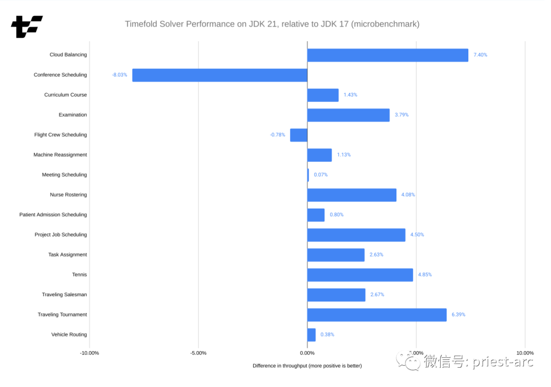 以下是 Java 21 与 Java 17 在约束流性能方面的比较结果: