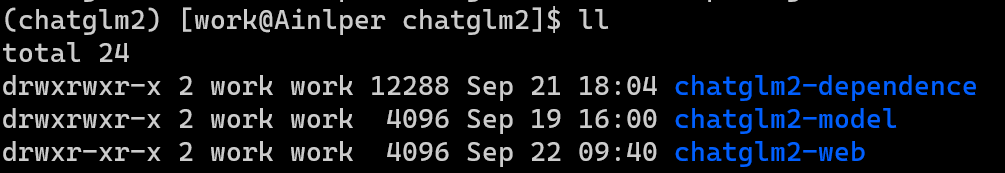 1、首先,将chatglm-web,拷贝到:/home/work/chatglm2/下面。如下图所示