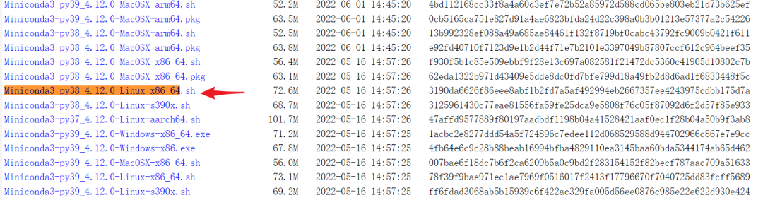 「方法二」 因为Miniconda自带python,所以要在官网下载python版本为3.8的Miniconda版本。下载地址为:https://docs.conda.io/en/latest/miniconda.html#linux-installers,具体截图如下。