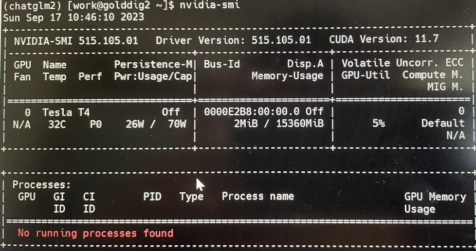 按照以上方式解决了报错问题之后,再按照第 5) 步执行显卡安装命令,最后通过nvidia-smi查看显卡安装是否成功。具体命令如下所示: