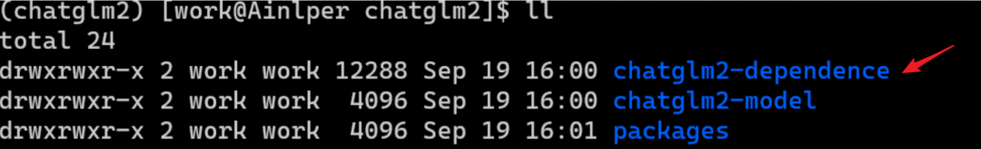 1、将chatglm2的依赖包:chatglm2-dependence,拷贝到:/home/work/chatglm2/下面。(这里work可以是你自己用户名)如下图所示:
