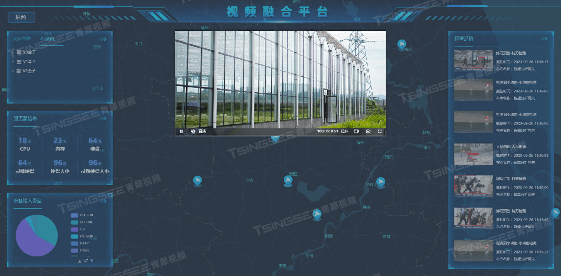 视频监控系统EasyCVR平台支持国标GB/T28181、RTMP、RTSP/Onvif协议等,以及海康SDK、大华SDK、海康Ehome等厂家私有协议,也支持标准的API开发接口。系统可将范围内的监控设备进行快速接入,通过视频监控,还可对农场进行远程、实时的高清视频监控、录像、回看、查询、告警等,极大提高农场安防能力。