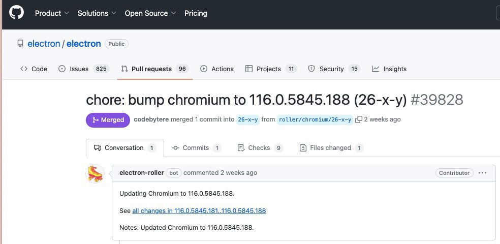 目前,Electron 修补了该漏洞(https://github.com/electron/electron/pull/39828)。