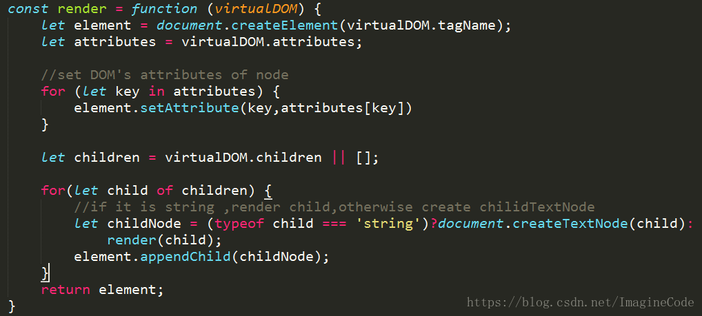但是。。还没完呢。生成了VirtualDOM后,还需要进行渲染,生成一个真实的DOM,毕竟前面的是虚拟的嘛。