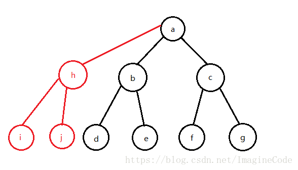 现在,我们是不是能容易地分析出需要再a和b节点之间插入hij节点。然后根据hij节点的关系,可以看出节点h是i与j节点的父节点,那么我们就知道了现在只需要插入完整的h节点。 上面有提到广度优先类似,稍微看一下吧: 广度优先的遍历结果分别如下: