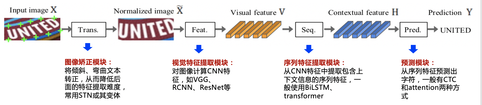 基于校正的方法利用一些视觉变换模块,将非规则的文本尽量转换为规则文本,然后使用常规方法进行识别。