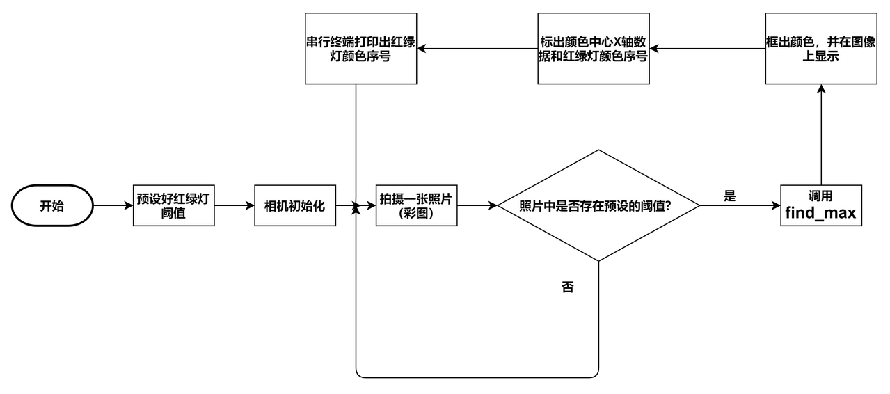 主要是对摄像头每帧拍摄到的图像进行图像进行阈值处理,再进行判断出现的究竟是哪种红绿灯(红灯、绿灯、黄灯),然后再将这个判定结果和其他两个数据一起打包通过串口发送出去。