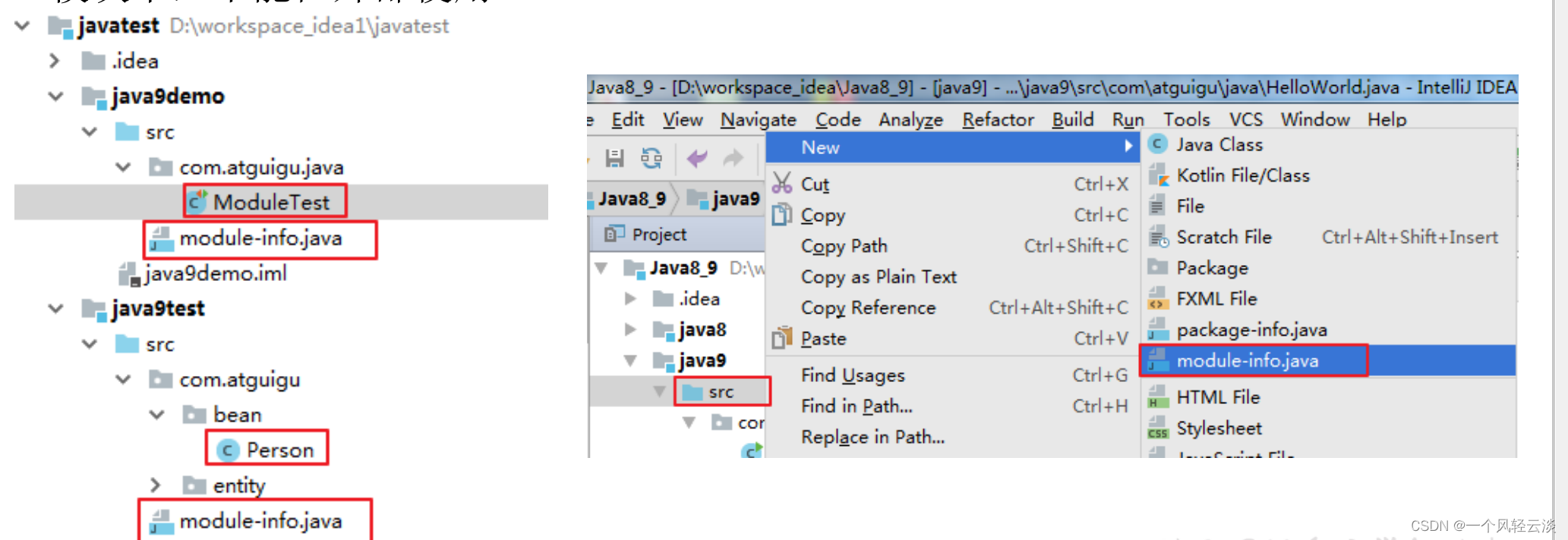 对应在java 9demo 模块的src 下创建module-info.java文件: