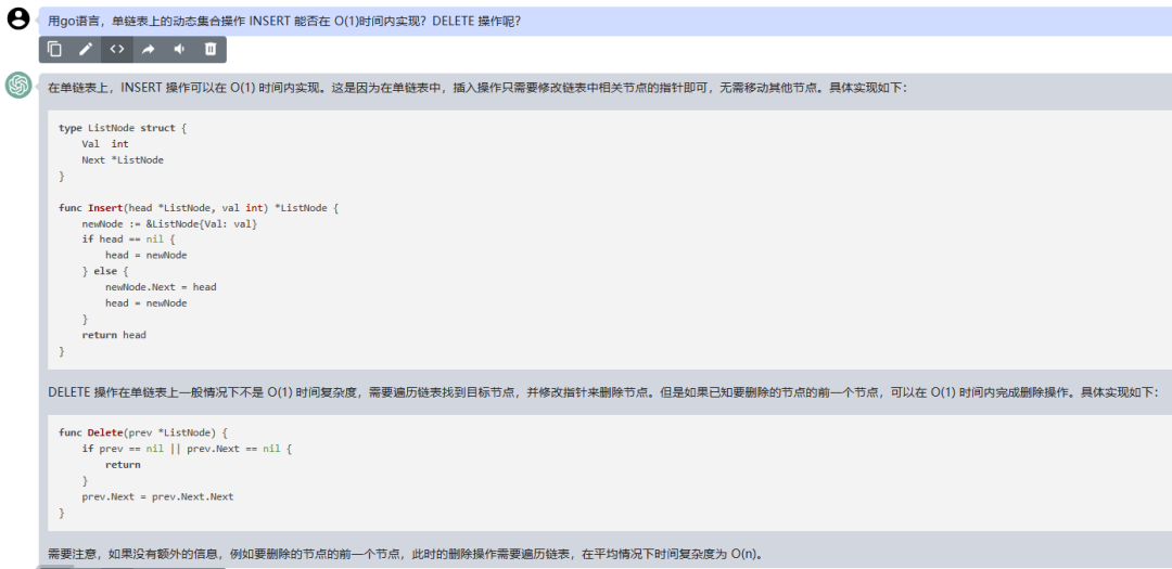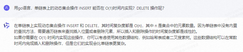 在Go语言中,单链表上的动态集合操作INSERT和DELETE的时间复杂度都是O(n),而不是O(1)。