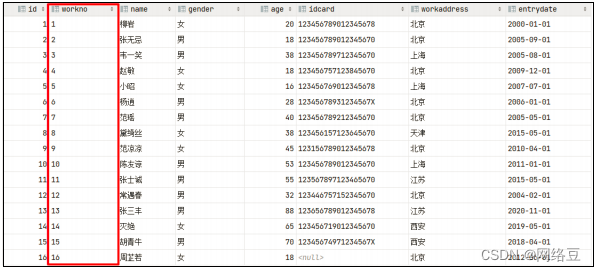 update emp set workno = lpad(workno, 5, '0');处理完毕后 , 具体的数据为 :