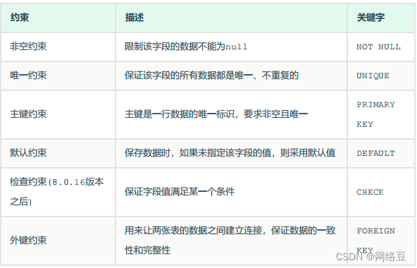 概念:约束是作用于表中字段上的规则,用于限制存储在表中的数据。