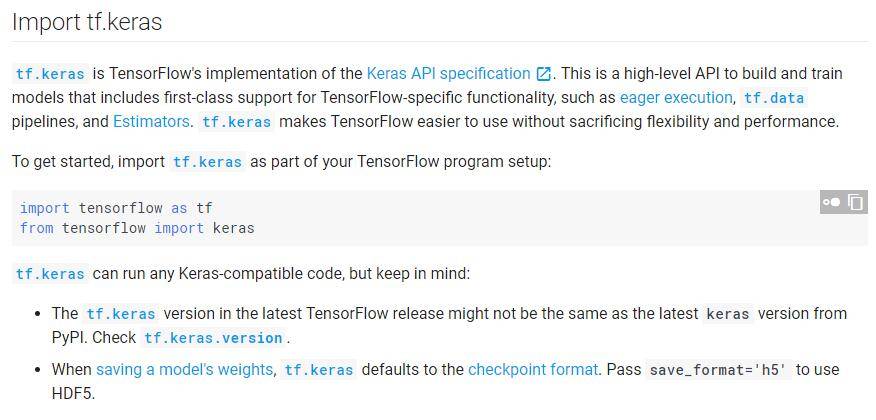 model.evaluate(x_test, y_test)变相地说,我们可以不用安装Keras也可以使用类似于Keras的操作方式,可以说我们之前使用Keras编写的代码,用tf.keras这个模块都可以实现: