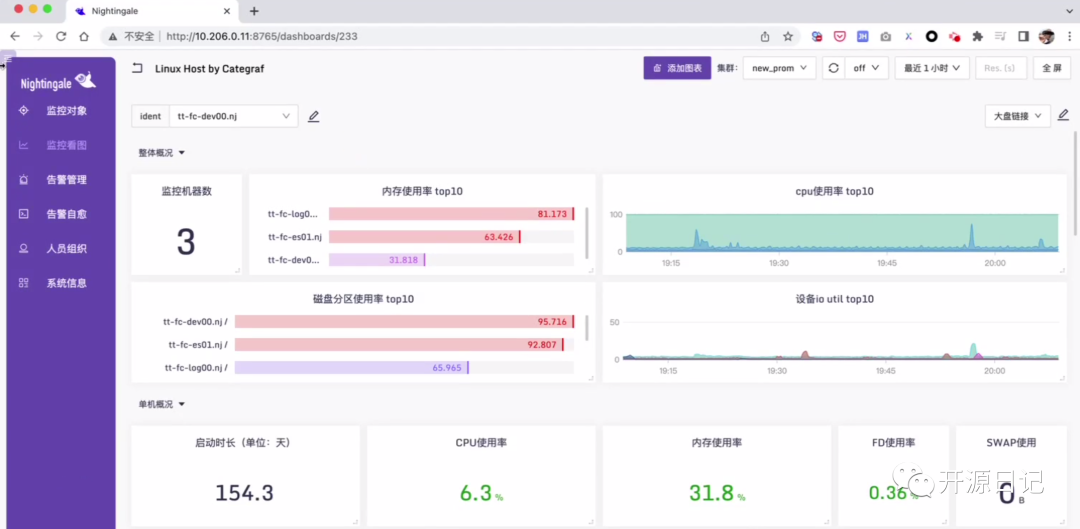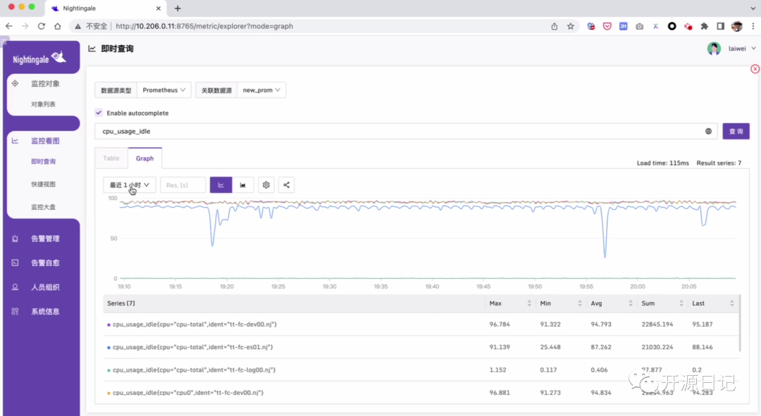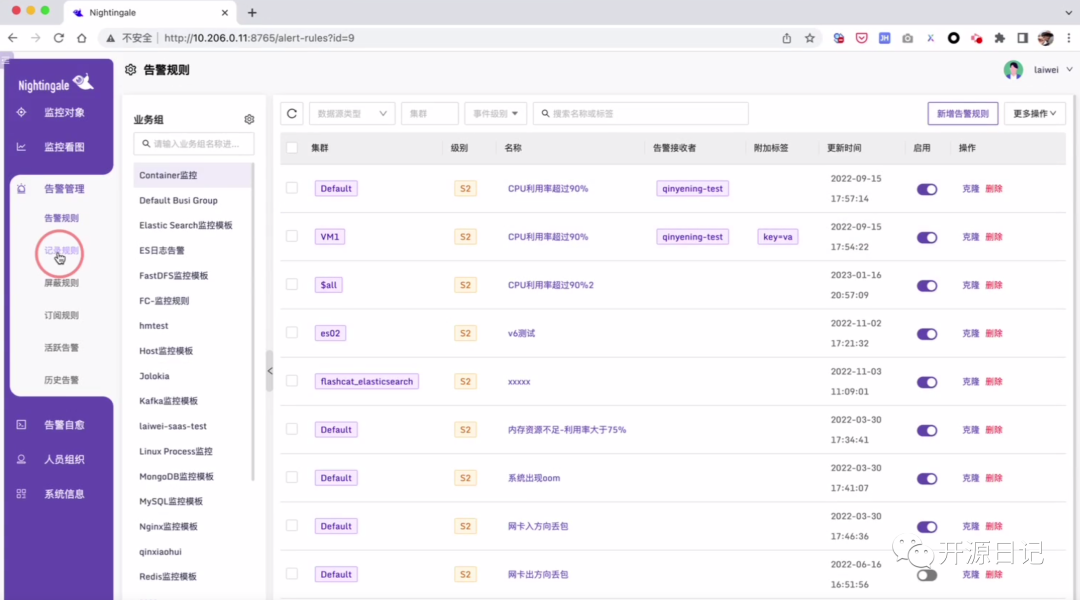 软件介绍夜莺(Nightingale)是中国计算机学会托管的开源云原生可观测工具。它最早由滴滴于2020年孵化并开源,2022年正式捐赠给中国计算机学会。夜莺采用了All-in-One的设计理念,将数据采集、可视化、监控告警和数据分析功能集于一体。该软件紧密集成于云原生生态系统中,融入了顶级互联网公司的最佳实践,并沉淀了社区专家的经验,可即插即用。