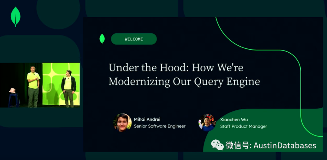 大家好我是吴晓晨,我是MongoDB 的查询和性能部门的产品经理,这边的是我的同事Mihai这个产品的高级软件工程师,来Mihai给大家打一个招呼。大家好我是Mihai 我是MongoDB 查询引擎和性能部门的资深软件工程师。