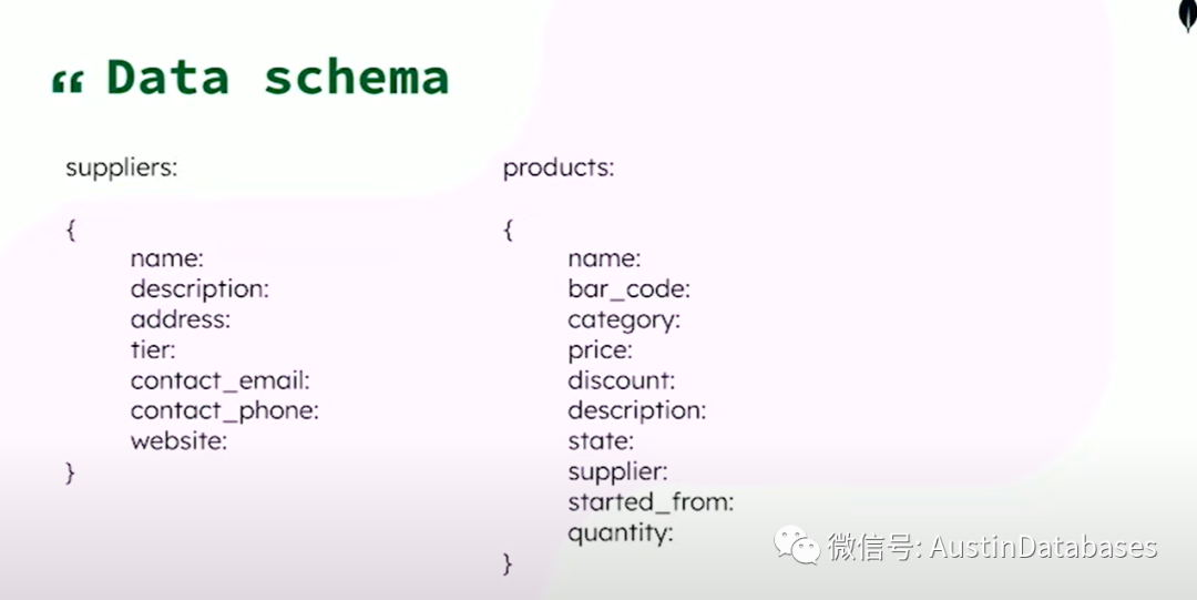 这里有两个collections的设计,一个是供应商一个是产品,其中包含各种属性。