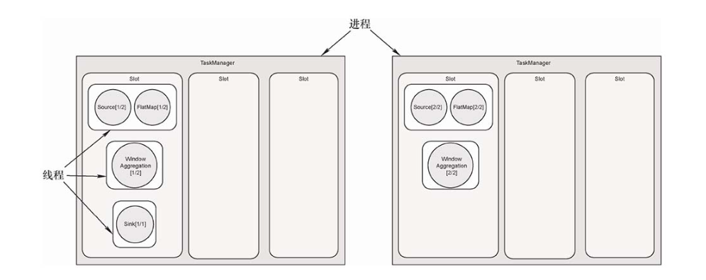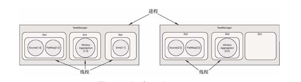 TaskManager是一个JVM进程,在TaskManager中可以并行执行一到多个任务。每个任务是一个线程,需要TaskManager为其分配相应的资源,TaskManager使用Slot给任务分配资源。