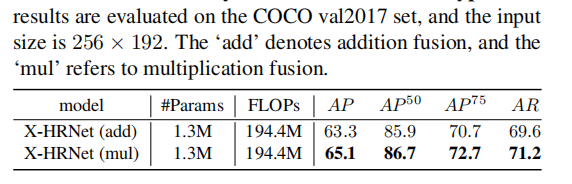 可以发现乘法融合比加法融合更适合人体姿势估计任务。