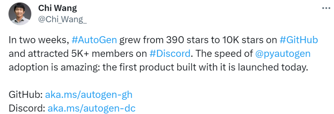 一个项目,用了短短两个星期的时间,星标量从 390 狂增到 10K,并在 Discord 上吸引了 5000 多名成员,如此爆火的项目便是微软最近发布的全新工具 AutoGen。
