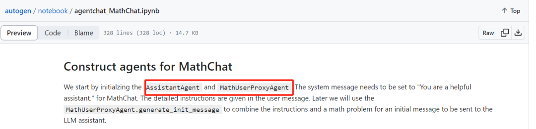 如下示例展示了借助 AutoGen 框架,使用 MathChat 解决数学问题时,运行代码中出现了构建智能体这一步骤,并对其进行了初始化: