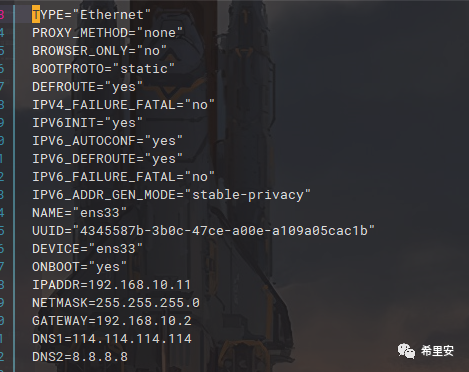 周末搭建虚拟机准备用来着,发现这次搭建的虚拟机通不了外网,心想虽然虚拟机一直在用,没怎么在意网络设置,一直用的默认配置就没出过这种问题,我用的centos 固定的静态ip,于是检查了这几行内容: