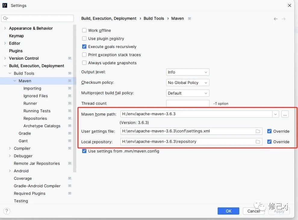 在idea中点击 File ->Settings -> Build, Execution, Deployment ->Build Tools -> Maven 设置maven