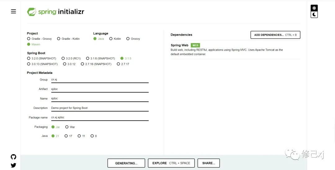 我们可以通过以下步骤在 https://start.spring.io/ 上初始化您的项目: