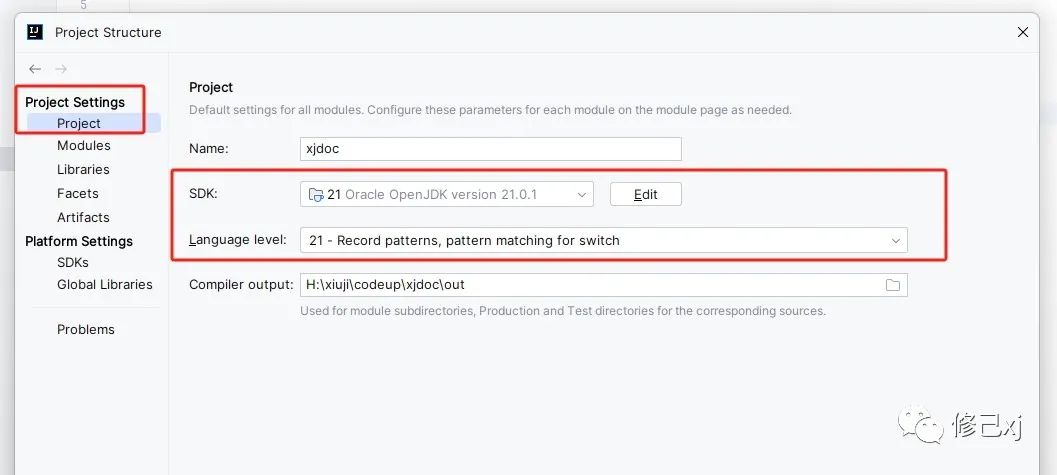 在idea中点击 File -> Project Structure -> Project Settings ->Project 设置jdk