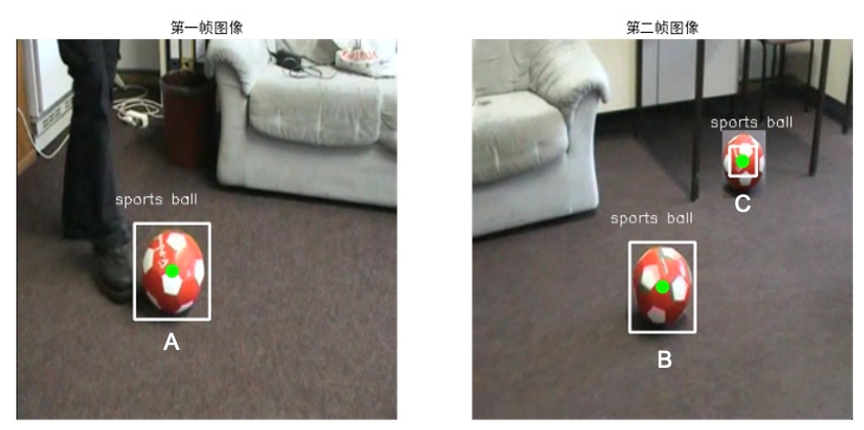 进行关联,从而追踪到这两个足球的运行轨迹。