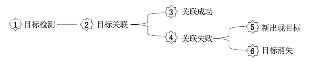 (1)目标检测,检测出要追踪目标的位置坐标、目标分类等信息,初始化每个目标的轨迹。