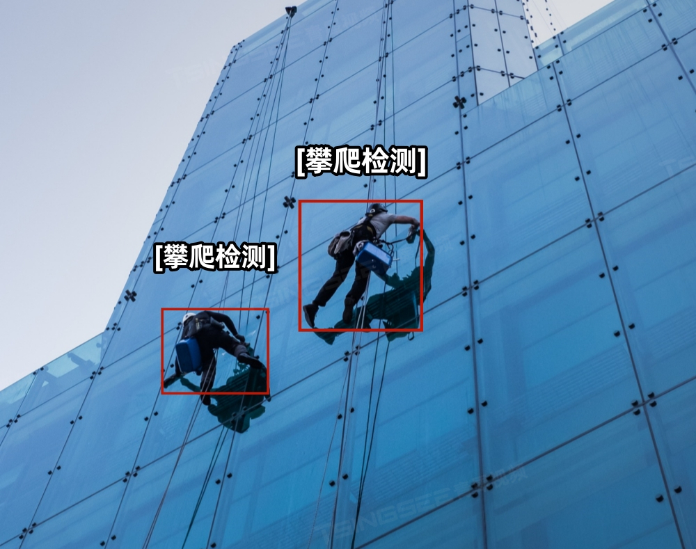 利用人体攀爬行为检测技术,对建筑物外墙、高楼悬挂设备等进行监测,实现对人员攀爬建筑物的自动告警、抓拍与处理。